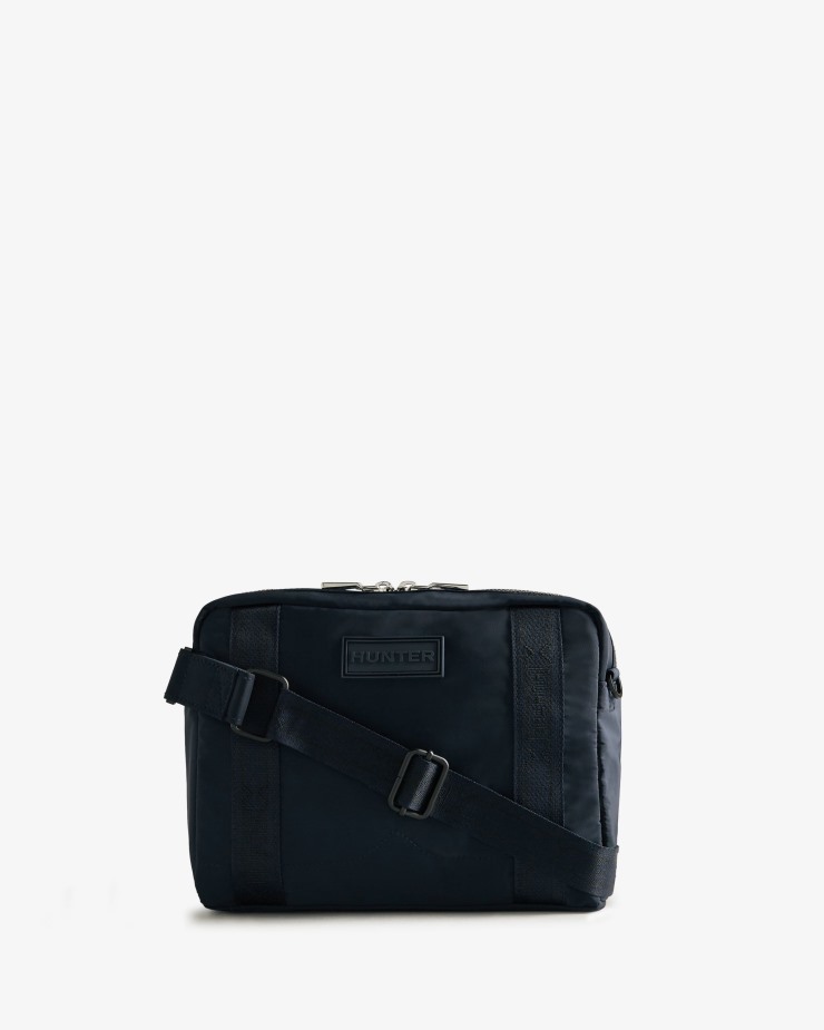 Designed with sustainability in mind,this refined sustainable crossbody bag is crafted from 100% recycled polyester which has been remastered from post-consumer waste. True to Hunter's weatherproof identity,it's water resistant with an additional water-resistant lining for extra protection,which is additionally crafted from 100% recycled polyester. With an adjustable strap for comfort and an internal zip pocket for valuables,this navy recycled crossbody bag can smartly be attached to the front of the Sustainable Top Clip Backpack using the 'S' clips. Finished with a tonal Hunter box logo and a tablet screen to keep items separate from the main body,it's a practical vegan crossbody bag choice for everyday commuting.Note: Backpack and Crossbody are sold seperately.100% Recycled polyester fabric with water resistant finish100% Recycled polyester water resistant lining for extra protectionAdjustable strap for ease of wearingInternal zip pocket for valuablesTablet screen to keep items in bag separate from main bodyCan be attached using the 'S' clip to the front of the Top Clip BackpackHunter tonal logoHeight 18cm,depth 8cm,width 25cm,strap length (when full extended) 130cm