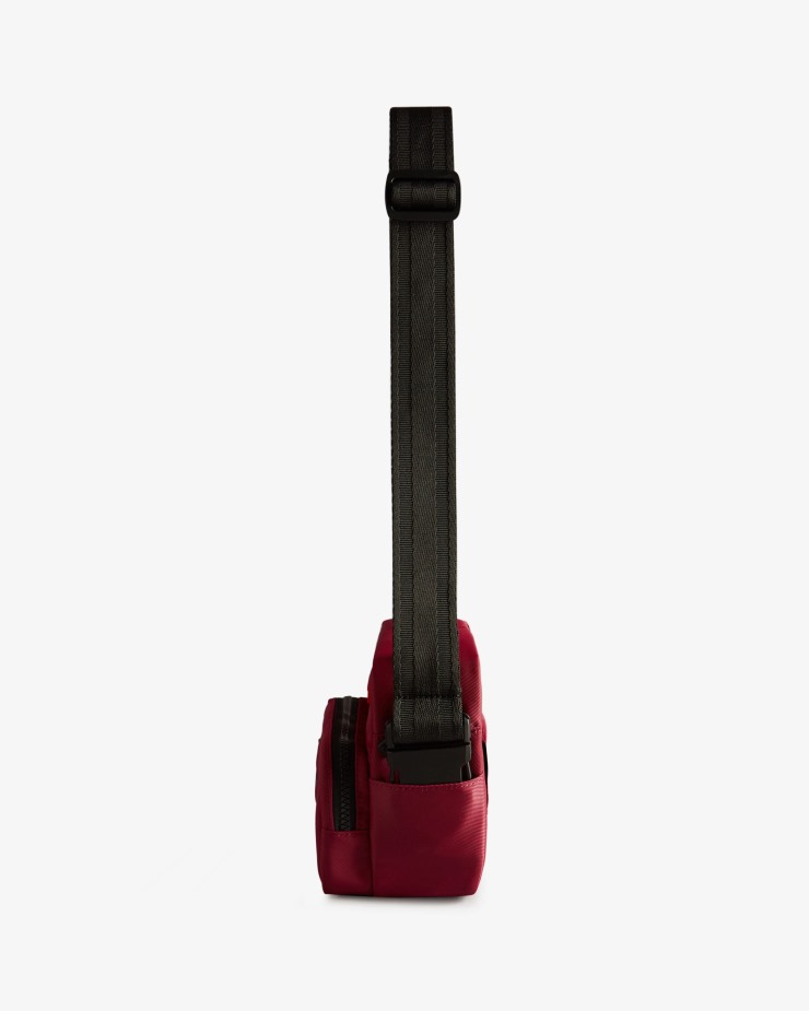 All-weather protection is very important to us. Take this seasonal burgundy Nylon Camera Bag; made from 100% recycled polyester,it is water-resistant inside and out. With a detachable,adjustable strap,it can be worn multiple ways for maximum versatility.Certified veganWater-resistant nylon twill exterior100% recycled polyester water-resistant lining for extra protectionExternal zip pocket for valuablesDetachable adjustable strap for comfort and versatilityCan be worn as a crossbody or belt bag around waistSide clip detailingHunter PVC labelHeight 14.5cm,depth 10.5cm,width 21cm