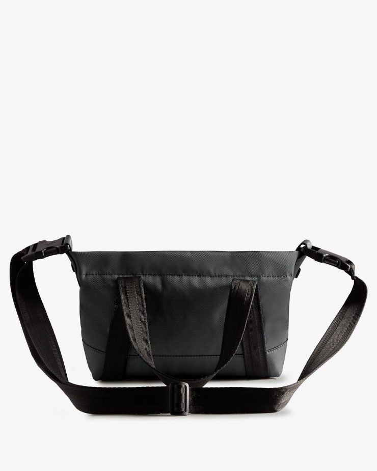 With a recycled polyester lining,a water-resistant exterior and a reinforced base,our navy Nylon Mini Top Clip Tote will protect your possessions,whatever the weather. The ideal size for every day,it has a detachable adjustable strap so that it can be carried several different ways.Certified veganWater-resistant nylon twill exterior100% recycled polyester water-resistant lining for extra protectionTop handle for carryingDetachable adjustable strap for comfort and versatilitySide clip detailingInternal pocket for valuablesReinforced base to protect belongingsHeight 18cm,depth 14cm,width at base 24cm,width at topline 30cm