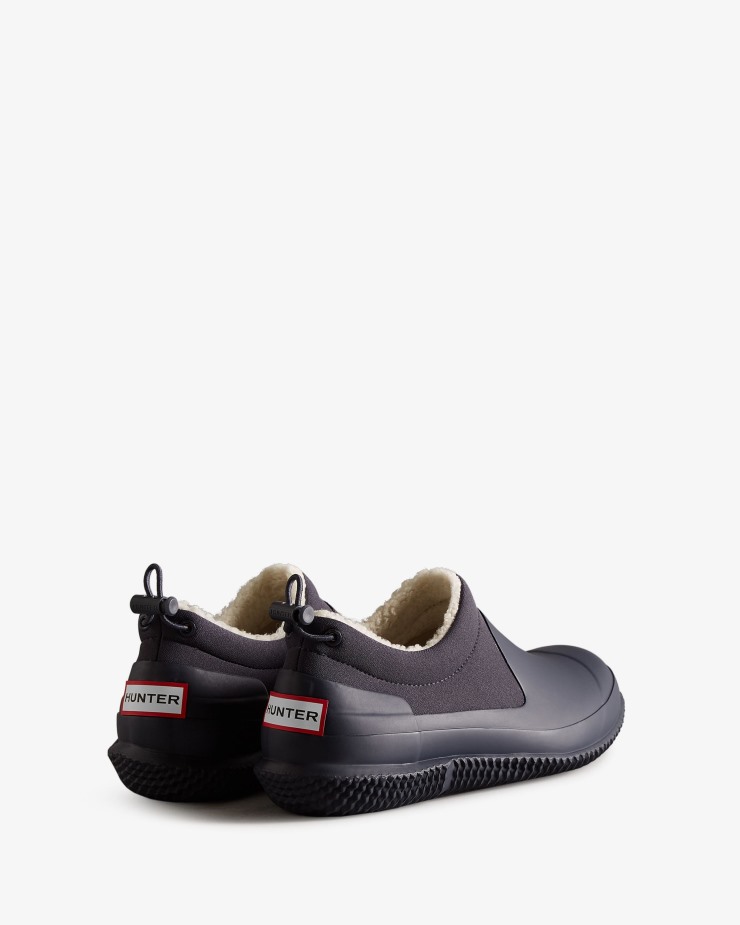 Size/Fit Summary: True to size,Snug fit. If you are in-between sizes or want to wear a thick sock with them,it is recommended to size up.Take on the cold with these warm and snug slipper shoes. Merging two technical materials,the Original Vegan Shearling Shoe is handcrafted from natural rubber and insulating neoprene and is contructed with a comfortable Ortholite footbed. An icon to the Hunter family,the 100% waterproof lower Women's Vegan Shearling Shoe is equipped with a firm grip perfect for slippery winter days. Featuring a draw-cord,Vegan Shearling fleece lining and a thermal insulated sole,they can be worn in temperatures as low as 23��F. In a stylish tonal navy,choose this clog for your next frosty outing,morning dog walk or simply as a toasty pair of slippers for nights in.Waterproof outsole and lower rubber panelsHandcraftedVegan Shearling lining helps wick away moistureAdded thermal insulation insoleOrtholite footbedHunter branded hardwareDraw-cord for a more tailored fitCan be worn in temperatures as low as -5��C (23��F)