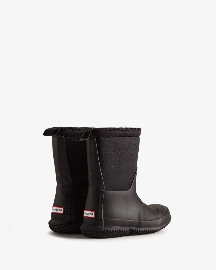 Size/Fit Summary: True to size,Regular fit. Sizing suitable for 18 months to 6 years old (size 5-12).Let your little one take on the cold with snug legs and feet in the insulated Vegan Shearling boots. Merging two technical materials,these boots are handcrafted from natural rubber and insulating neoprene. A scaled down version of the adult icon,the 100% waterproof little kids Roll Top Vegan Shearling Boot is equipped with an Ortholite footbed and a firm grip perfect for slippery days. Featuring a fleece lining and a thermal insulated sole,they can be worn in cold winter temperatures. Available in a stylish black and able to be worn multiple ways,they can roll them up or down on their next frosty outing.WaterproofHandcraftedRoll top styleVegan Shearling fleece lining helps wick away moistureOrtholite footbedThermal insulated insoleCan be worn in temperatures as low as -5��C (23��F)