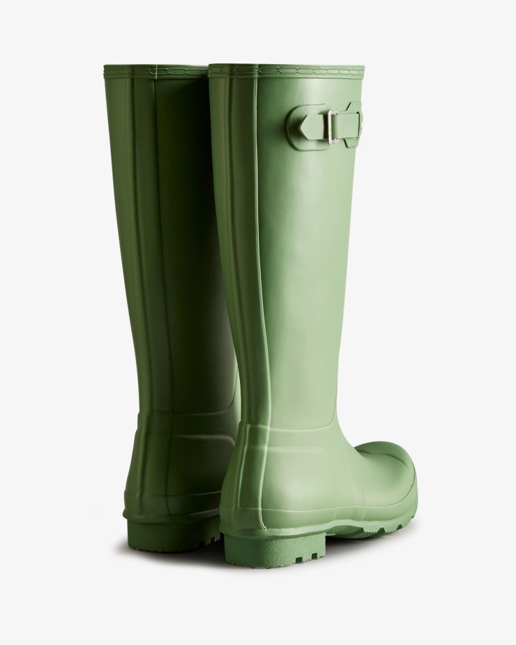 Size/Fit Summary: True to size,Regular fit.Designed to shield and protect from the elements,the Original Tall Rain Boot has been at the heart of the Hunter Original brand since its introduction in 1956. Formed of natural rubber,each pair is made from 28 hand-cut parts and assembled over three days on an aluminium last bespoke to Hunter,before being vulcanised for superior protection. Featuring the Hunter Original tread pattern and updated with a 100% recycled polyester lining and insole,this men's waterproof boot with a seasonal green matte finish is a wet weather necessity.We recommend that all Hunter boots be worn with socks to protect the wearer's skin from contact with rubber. All Hunter Boot Socks are specially designed for use with our boot range and feature a fold over top to cover the rubber and nylon boot edge,preventing any rubbing associated with wear.Certified veganWaterproofHandcrafted from 28 partsRecycled polyester lining and insoleRubber outsole with Hunter Original tread patternCrafted from natural vulcanised rubber with matte finish
