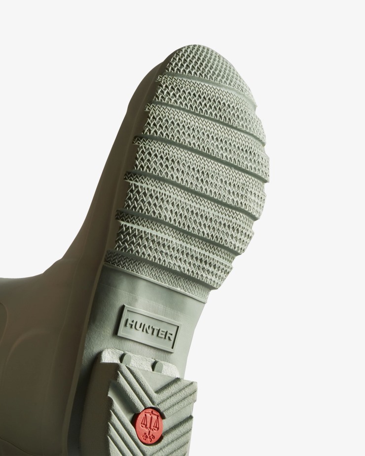 Size/Fit Summary: True to size,Regular fit. If you are in-between sizes,have a wider calf or want to wear a thick sock,it is recommended to size up.Perfect for wet weather conditions,this women's Rain Boot has been at the heart of the Hunter Original brand since its introduction in 1956. Formed of natural rubber,each pair is made from 28 hand-cut parts and assembled over three days on an aluminium last bespoke to Hunter,before being vulcanised for superior protection. Featuring the Hunter Original tread pattern,an updated 100% recycled polyester lining and insole,this matte seasonal green waterproof boot is a rainy-day necessity.We recommend that all Hunter boots be worn with socks to protect the wearer's skin from contact with rubber. All Hunter Boot Socks are specially designed for use with our boot range and feature a fold over top to cover the rubber and nylon boot edge,preventing any rubbing associated with wear.Certified veganWaterproofHandcrafted from 28 partsRecycled polyester lining and insoleRubber outsole with Hunter Original tread patternCrafted from natural vulcanised rubber with matte finish
