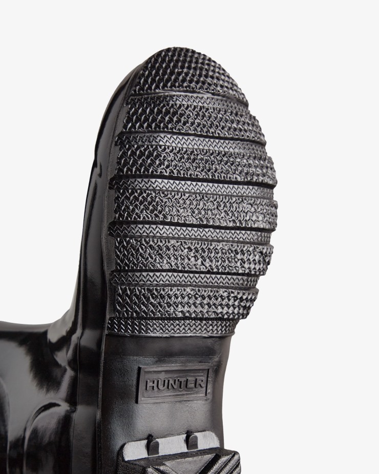 Size/Fit Summary: True to size,Regular fit. If you are in-between sizes,have a wider calf or want to wear a thick sock,it is recommended to size up.Perfect for wet weather conditions,this women's Rain Boot Boot has been at the heart of the Hunter Original brand since its introduction in 1956. Formed of natural rubber,each pair is made from 28 hand-cut parts and assembled over three days on an aluminium last bespoke to Hunter,before being vulcanized for superior protection. Featuring the Hunter Original tread pattern,and a comfortable polyester lining,this classic glossy black waterproof boot is a rainy-day necessity.We recommend that all Hunter boots be worn with socks to protect the wearer's skin from contact with rubber. All Hunter Boot Socks are specially designed for use with our boot range and feature a fold over top to cover the rubber and nylon boot edge,preventing any rubbing associated with wear.WaterproofHandcrafted from 28 partsPolyester liningRubber outsole with Hunter Original tread patternCrafted from natural vulcanised rubber with gloss finish