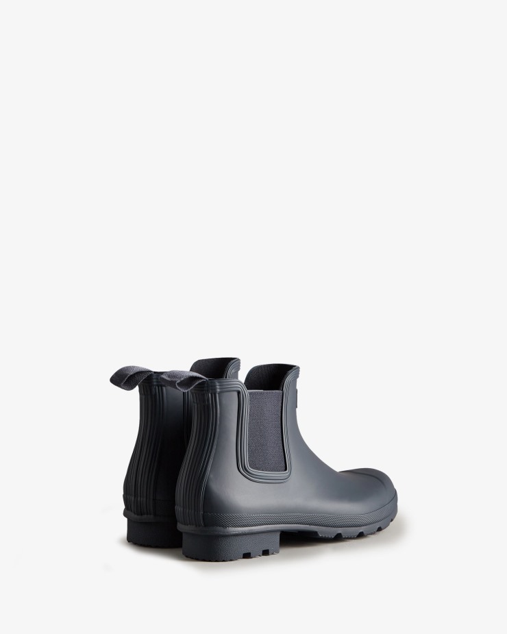 Size/Fit Summary: True to size,Regular fit which features new engineered improvements. If you are in-between sizes or want to wear a thick sock,it is recommended to size up.The Hunter Original Chelsea Boot has been re-engineered for an improved fit and all-day comfort. A wider ankle circumference,and an increased curve in the heel and around the Achilles tendon delivers an even more comfortable fit.The new and improved Hunter Original Chelsea Boot has an even more optimum fit to maximise all-day comfort. Ready for rain,each boot is handcrafted from natural rubber and vulcanized for superior protection. Retaining the iconic features of a traditional Chelsea,it features elasticated-gussets and has a nylon pull-tab to make stepping into the boot easy. In a classic navy matte,these men's waterproof Chelsea's are a wet weather wardrobe essential.We recommend that all Hunter Chelsea boots be worn with Hunter Chelsea socks,which have been technically designed to protect the wearer's skin from contact with rubber in specific areas.WaterproofHandcraftedWaterproofPolyester liningRubber outsole with Hunter Original tread patternElastic side gussets and nylon pull-tabCrafted from natural vulcanised rubber with a matte finish