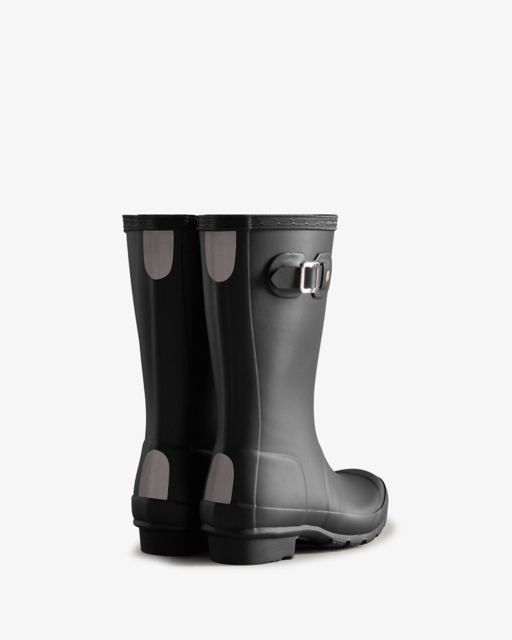 Size/Fit Summary: True to size,Regular fit. Sizing suitable for 5-11 year olds (size 13-6).A mini version of the iconic Original Tall Boot,the Original Kids Rain Boot is a dream for junior explorers. This classic Hunter black waterproof boot is handcrafted from natural rubber. Designed for adventures,our specialised kids boots are highly resistant to wear and abrasion with a polyester lining for comfort. Reflective patches and the Hunter Original tread offer added safety so you can be confident letting them take on the elements whatever the weather.We recommend that all Hunter boots be worn with socks to protect the wearer's skin from contact with rubber.WaterproofHandcraftedPolyester liningRubber outsole with Hunter Original tread patternReflective patches for increased visibilityCrafted from natural vulcanised rubber with matte finish