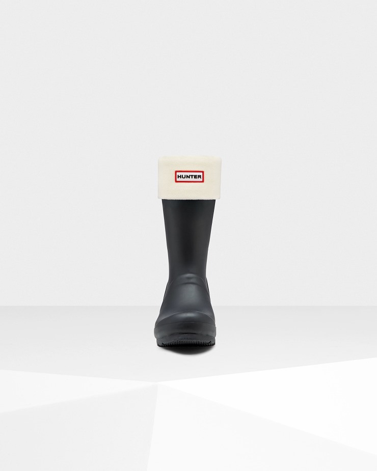 Size/Fit Summary: Sizes run slightly large ᄄC we recommend the following sizing for wearing with your Original Short Hunter Boots. Size M = US Women's Size 5-8. Size L = US Women's Size 9-11,US Men's Size 8-10. Size XL = US Men's Size 11-13.Designed to be worn with Hunter Rain boots,these cozy boot socks offer comfort and warmth while enhancing the fit of the boot. In a classic white tone,opt for these on your next venture outdoors.100% Polyester fleeceFold down cuffDesigned to fit the Original Short Rain BootPVC logo branding