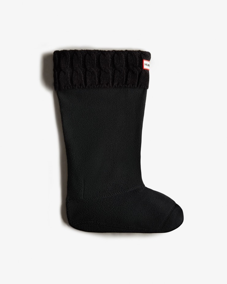 Size/Fit Summary: Sizes run slightly large ᄄC we recommend the following sizing for wearing with your Original Tall Hunter Boots. Size M = US Women's Size 5-8. Size L = US Women's Size 9-11,US Men's Size 8-10. Size XL = US Men's Size 11-13.Personalise your Hunter Boots with these warm and snug boot socks. Designed to fit comfortably inside the Original Tall Rain Boot Boot and enhance fit while adding comfort and warmth,these classic black boot socks feature a cozy knitted fold down cuff and Hunter Original logo.100% Polyester fleece legFold down cuffSix stitch cable knitted cuffDesigned to fit the Original Tall Rain BootPVC logo branding