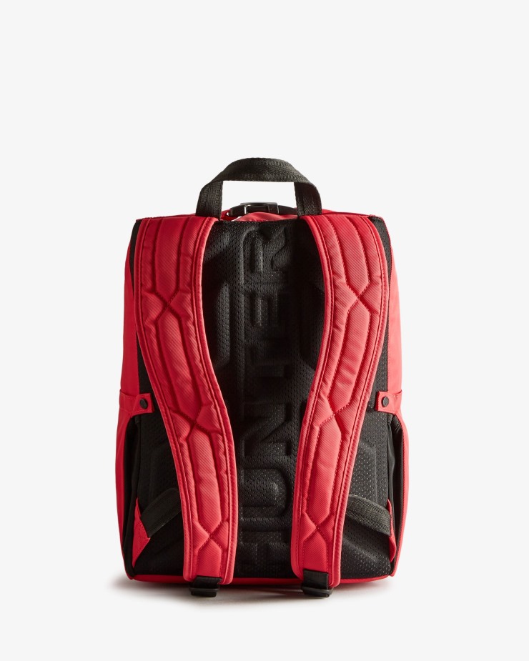 For the everyday adventure,our water-resistant seasonal pink Nylon Pioneer Top Clip Backpack provides all-weather protection. The inside of the bag is lined with recycled polyester and fitted with a laptop pocket. Outside the bag,side pockets provide easy access to a water bottle or umbrella.Certified veganWater-resistant nylon twill exterior100% recycled polyester water-resistant lining for extra protectionInternal padded laptop sleeveExternal zip pocket for valuablesHunter branded messh back for added comfort and airflowPadded adjustable straps for ease of wearingElasticated side pockets with adjustable domes suitable for a water bottleHunter PVC labelHeight 38cm,depth 16cm,width 27cm