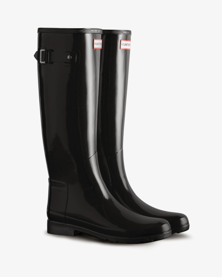 Size/Fit Summary: True to size,Slim fit. If you are in-between sizes or have a wider foot,it is recommended to size up.With a slimmer fit ideal for city-living,the Refined Tall Rain boot features a tailored shape,and is constructed from fewer rubber layers for a more lightweight feel. Handcrafted and fully waterproof,this women's wellington with a glossy black finish seamlessly blends practicality and style for a chic wet weather look.WaterproofHandcraftedPolyester liningConstructed from fewer rubber layers for a lightweight feelMoulded footbed for enhanced comfort and supportRubber outsole with Hunter Refined tread patternCrafted from natural vulcanised rubber with gloss finish