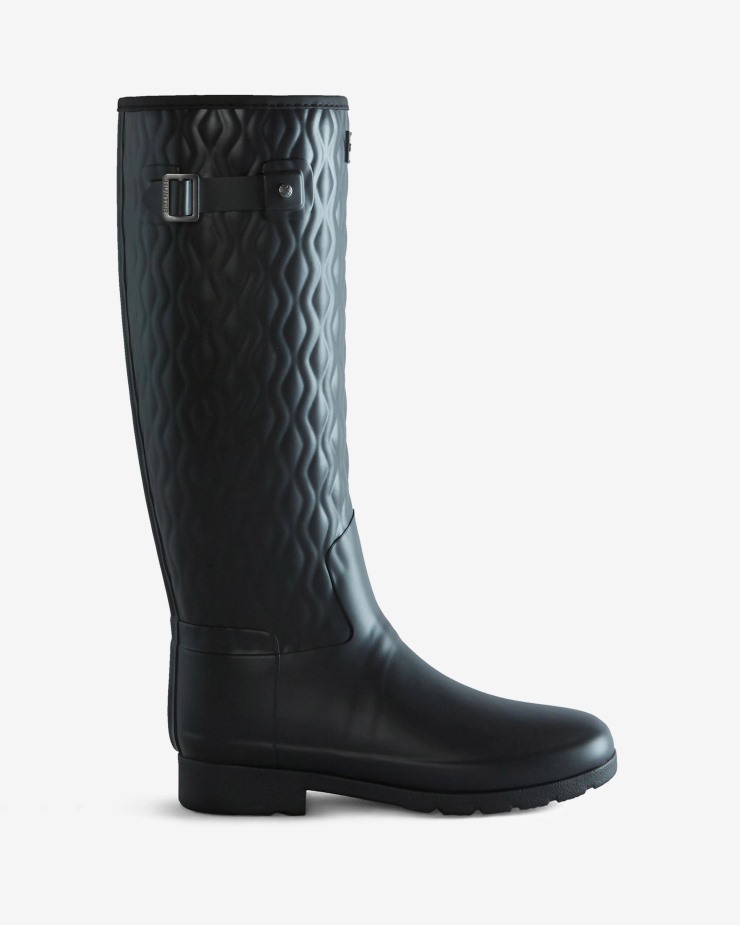 Hunter Botas De Lluvia Altas Acolchadas Verticales Ajustadas Y Refinadas Para Mujer Negras