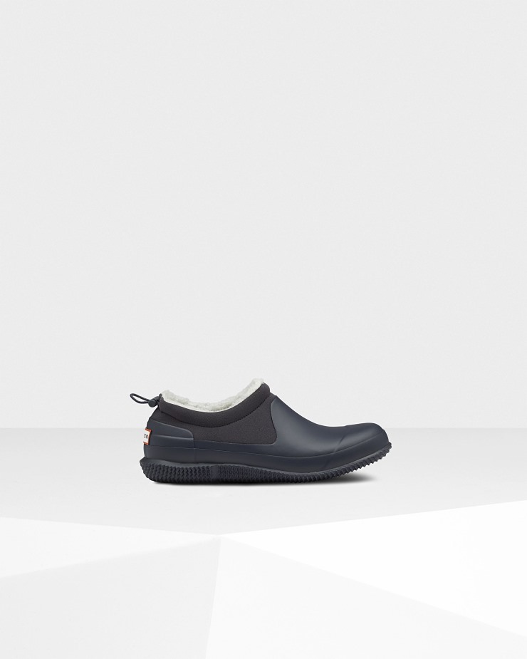 Size/Fit Summary: True to size,Snug fit. If you are in-between sizes or want to wear a thick sock with them,it is recommended to size up.Take on the cold with these warm and snug slipper shoes. Merging two technical materials,the Original Vegan Shearling Shoe is handcrafted from natural rubber and insulating neoprene and is contructed with a comfortable Ortholite footbed. An icon to the Hunter family,the 100% waterproof men's Vegan Shearling Shoe is equipped with a firm grip perfect for slippery winter days. Featuring a draw-cord,Vegan Shearling fleece lining and a thermal insulated sole,they can be worn in temperatures as low as -5��C (23��F). In a stylish tonal navy,choose this clog for your next frosty outing,morning dog walk or simply as a toasty pair of slippers for nights in.Waterproof lowerHandcraftedVegan Shearling fleece lining helps wick away moistureAdded thermal insulation insoleOrtholite footbedHunter branded hardwareDraw-cord for a more tailored fitCan be worn in temperatures as low as 23��F