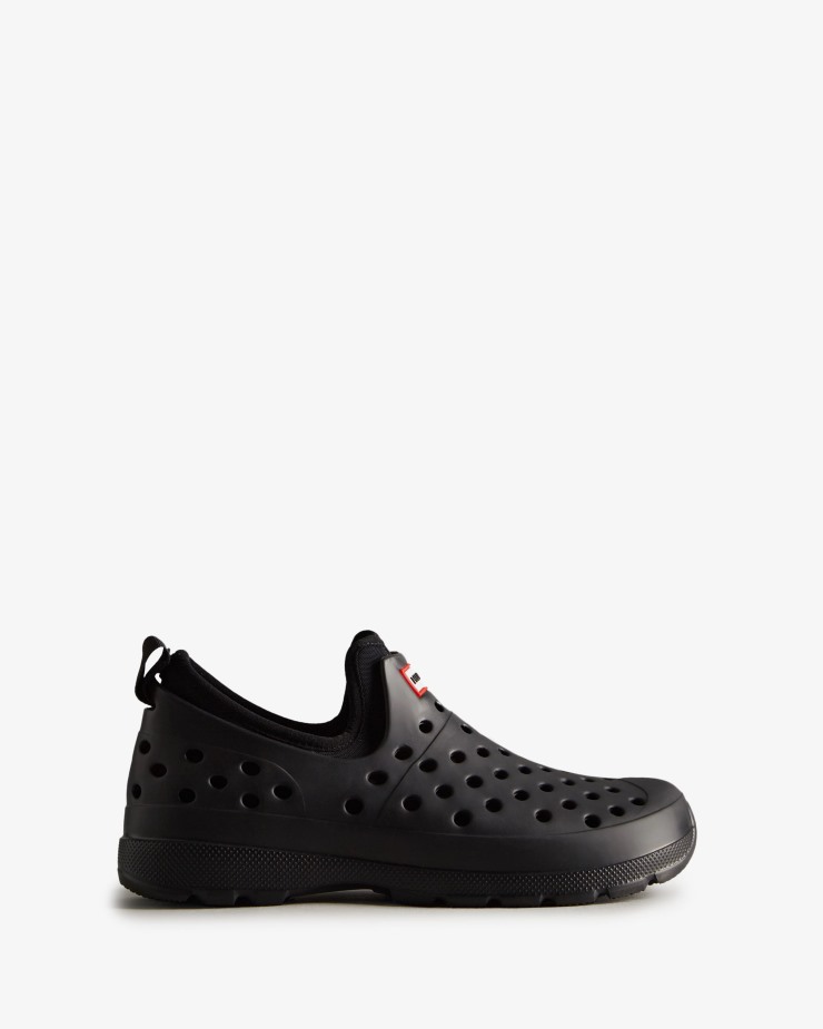 Size/Fit Summary: True to size,Regular fit. If you only wish to wear these water shoes with the sock lining removed,it is recommended to size down.With a removable,washable sock for comfort during long walks and a perforated exterior,which allows the outer shell to be worn separately in water and on the beach,Hunter's new Original Lightweight Outdoor water shoes is engineered for summer's many adventures. Inspired by the runaway success of the Outdoor Sandal,this new addition to the womens aqua shoes collection capitalises on the brand's knowledge of water-resistance. Crafted from the highest quality lightweight EVA with a matte black finish,it fills the gap between sandals and womens beach shoes,providing extra grip on slippery surfaces and traction underfoot for rock-hopping,sand and sports such as kayaking.Waterproof outsoleLightweight EVAFully moulded styleRemovable padded mesh lining sock for comfortPerforations on upper add breathabilityLight contouring on footbed for comfortPull tab for ease of foot entry of aqua shoesEasy to clean and quick dry
