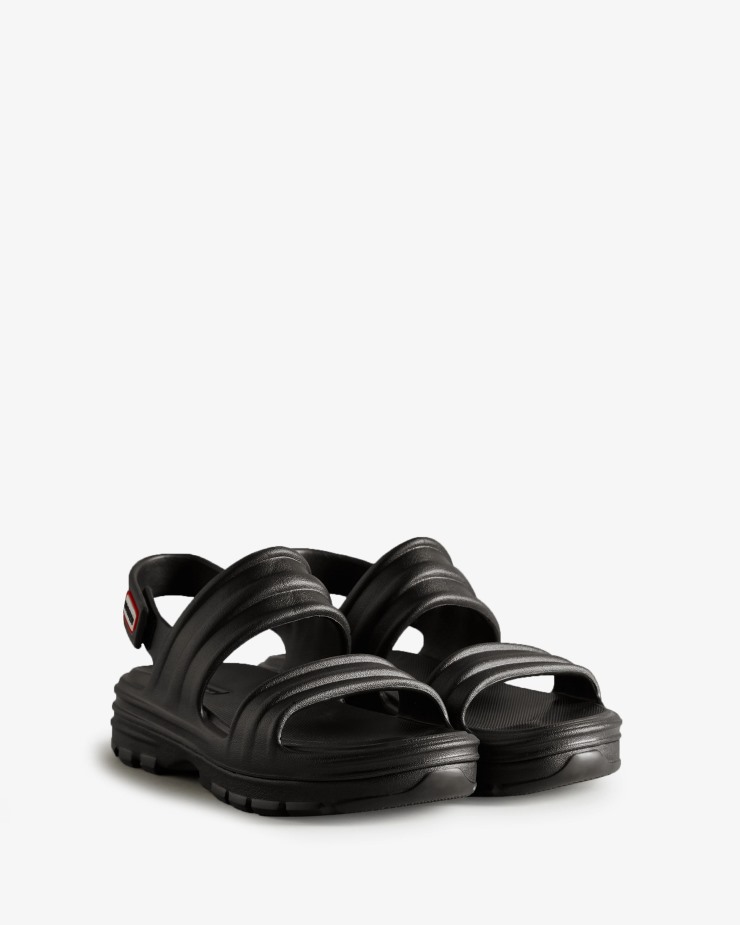 Size/Fit Summary: True to size,Regular fit.Protection,whether that's from the elements or of nature,is at the heart of Hunter. This season,we are excited to introduce a revolutionary new material produced from algae. When algae grows in excess,it can be harmful to ecosystems,so the algae in this material was sourced by cleaning up natural waterways. Our new Women's BLOOM? Sandal is crafted from a blend of our familiar lightweight blown EVA and this innovative material. This black sporty sandal from our injection moulded summer footwear range has adjustable straps and a chunky,durable tread for extra grip on all-terrains.Certified veganLightweightFully moulded styleAdjustable Velcro strapLight contouring on footbed for comfortEasy to clean and quick dryCrafted using BLOOM? Algae which helps reverse the effects of water pollution