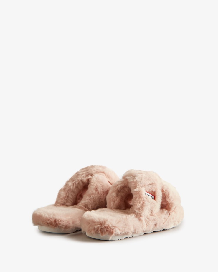 Size/Fit Summary: True to size. Regular fit. If you have a narrow foot,it is recommended to size down to assure the strap fits securely.The plush Faux Fur Flatform Slides are crafted with crossover straps and a platformed sole. A durable,lightweight EVA compound in the footbed provides support and cushioning. This is complemented by the signature Hunter tread sole,which ensures they can be worn indoors and outside. Cruelty free,these pink faux fur slides are completely vegan and are luxurious to the touch.Certified veganLightweightLuxurious faux fur upper and outsoleFaux fur lining for comfortSoft and lightweight footbed for comfortMoulded soft EVA platform outsole with light contouring
